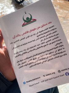 أصدرت الهيئة المغربية لنصرة قضايا الأمة كتابا مصورا من 33 صفحة حمل عنوان “طوفان الأقصى.. سنتان من التضامن المغربي”، ويبرز هذا الإصدار الجديد أهم الأنشطة وأوجه الدعم والإسناد التي قدمها الشعب المغربي للشعب الفلسطيني والمقاومة الفلسطينية على امتداد سنتين.